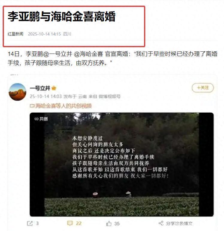 可李亚鹏随后发布的离婚宣言却道尽了不能说的深意。