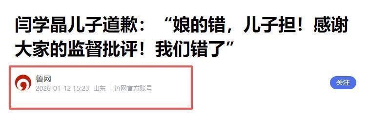闫学晶恐怕没有想到,自己的口无遮拦,最后居然害了全家。 在她说出一年百万花销不够花的哭穷言论后,11日晚她终于顶不住压力选择道歉。 文章很长,还有闫学晶本人的落款,但网友们对此却不买账。 大家觉得她不是真的知道错了,而是意识到自己赚到不钱,开始后悔了。 从哭穷事件开始发酵后,闫学晶一直用,冷处理的方式来对待。 后来网络上传出她酸黄瓜、能咋地言论,再次点燃观众的怒火。 她儿子直言这些片段是此前直播时的,被一些有心之人拼接成的。 但是却对母亲哭穷这件事情,没有一丝回应。 这样无视的态度让大家很生气,于是在深扒之下,发现闫学晶这个人早就开始忘本了。 此前在直播时她直言没有穷人,还说你穷就是因为你不够努力。 闫学晶甚至还拿农民来举例,说他们种一年的地就能赚到十几万。 她在说这些话时,语气中充满了不屑,完全忘记自己也是从农村出来的。 闫学晶早些年获得北京户口后,就自诩是城里人,北京人。 不仅当着赵本山的面说自己是北京人,完全忽视赵本山的劝诫。 甚至在直播时公开嘲讽亲姐姐,直言对方住在农村。 比对方要年轻10岁,自己是名副其实的人生赢家。 在看到弹幕上有人说她是农村妇女时,闫学晶会立刻反驳,表明自己城里人的身份。 忘本、口无遮拦本就是大家最讨厌的行为,这下她彻底洗不白了。 于是代言受到牵连,账号被禁止关注,戏路和捞金渠道全部断掉了。 意外的是,连儿子林傲霏也受到牵连,学历受到了质疑。 眼看着自己的黑料被越扒越多,闫学晶和儿子都做出了道歉。 但不管是说自己忘本也好,说自己脱离了普通人的生活也好。 观众对这封道歉信的感受就三个字,那就是不真诚。 演员的片酬本身就是天价,却还要拿此拿卖惨实在不应该。 此前演员因为卖惨翻车的例子历历在目,比如说自己手烂了、腿受伤了。 但网友们对此的态度都很一致,那就是不同情,并希望他们认识到这就是他们应该做的。 毕竟闫学晶儿子拍一部赚到钱,可能是普通人半辈子才能赚到。 现在闫学晶哭穷风波逐渐发酵后,她儿子恐怕连赚30万的机会都没有了。 闫学晶当时哭穷的嘴脸,不禁让人想到了娱乐圈中的很多明星。 说一支79元眉笔不贵的李佳琦,699元还买不到一双袜子的张雨绮。 他们和闫学晶一样,早就忘记了来时路,脱离普通人生活实在太久了。 闫学晶可能以为自己道歉后,这件事情就能从此翻篇,一朝回到从前。 但观众们在意的从来不是她是否后悔,而是闫学晶是否真的知道自己错在了哪里。 道歉的话谁都会说,但闫学晶在事情刚开始发酵时的漠视。 反映了她对这件事情毫不在意的嘴脸。 不忘本从来不是口头上说说,而是要从她具体怎样做来看。 闫学晶现在虽然已经道歉,可舆论依旧在逐渐发酵,一家人都被她所牵连。 可能她会为了自己此前的口无遮拦后悔,但她恐怕再也回不到之前了。