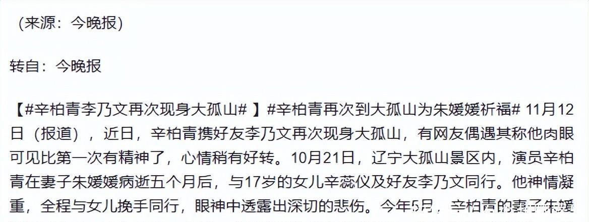 前段时间,辛柏青两次跑去大孤山,搞得全网都在瞩目。大家关注的可不是他偶遇明星这事新鲜,而是他从“精神萎顿”变成“腰背挺直”那种反差,真让人意外。在这明显的变化背后,藏着他对老婆浓浓的挂念和舍不得。而这座大山,也承载着老婆临走前的最后心愿。