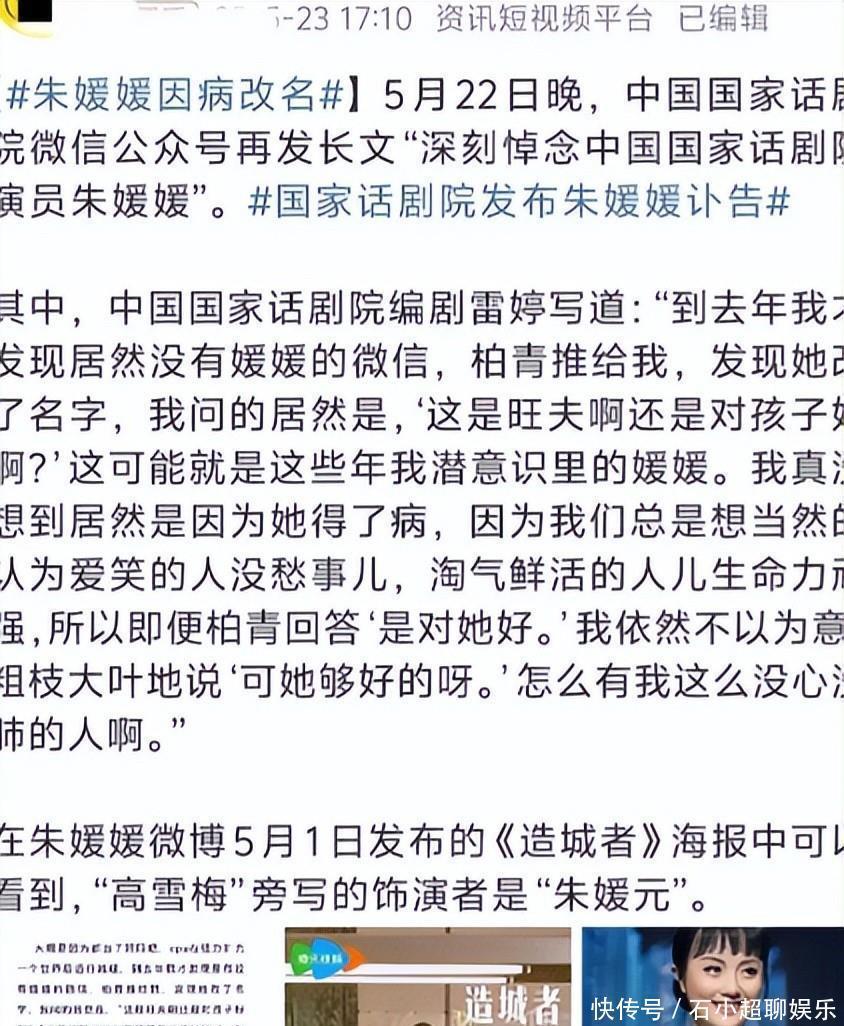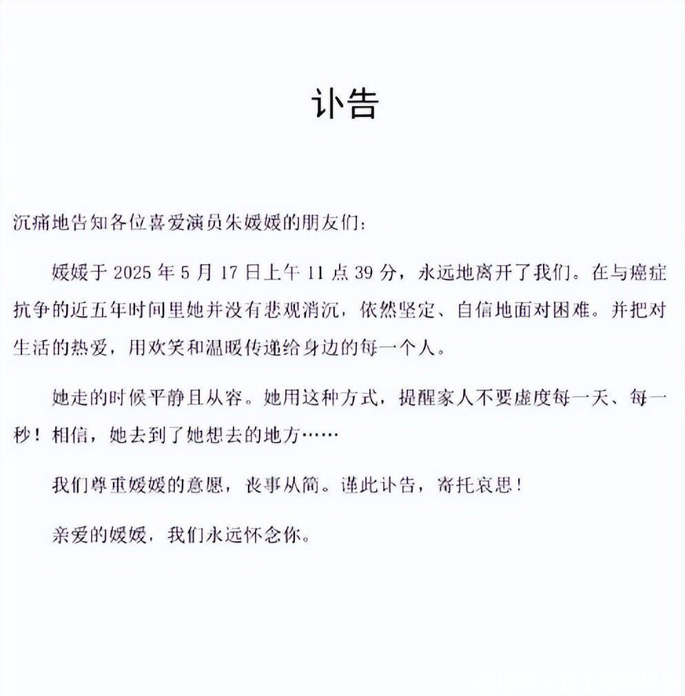 而且在社交平台上也已经停更了四个月。最新的消息是在5月21日那天公布了朱媛媛的讣告。这段跨越生死的坚守承诺,恰好证明了他和朱媛媛32年来相依相伴、幸福美满的感情。