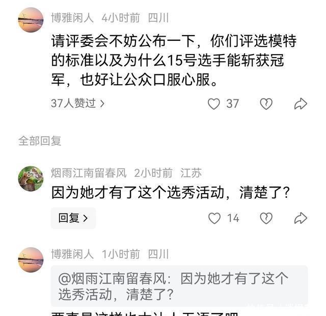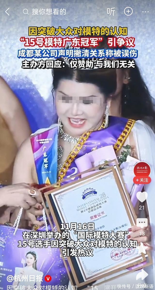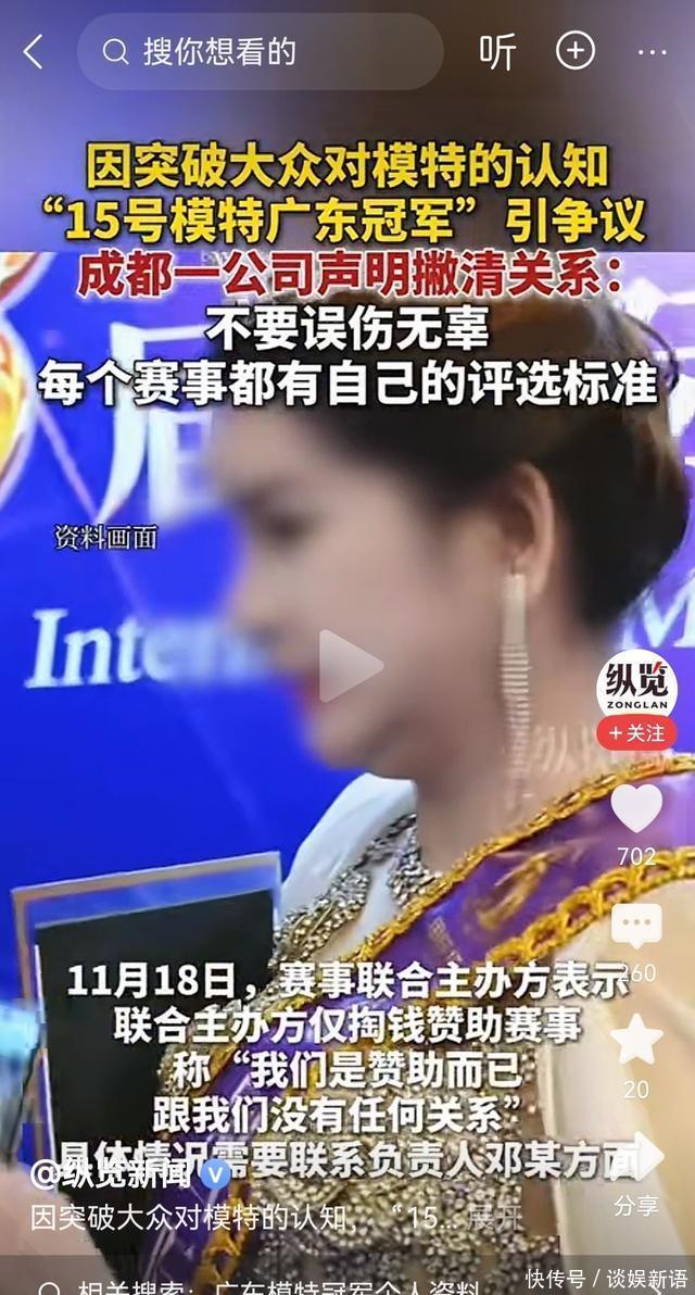 对此你又是怎么看的呢?欢迎在评论区留言讨论。 #上头条聊热点# #主办方回应15号模特广东冠军引争议##15号模特广东冠军# #广东冠军# # #广东模特冠军#