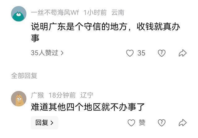 云南网友,说明广东是个守信的地方,收钱就真办事